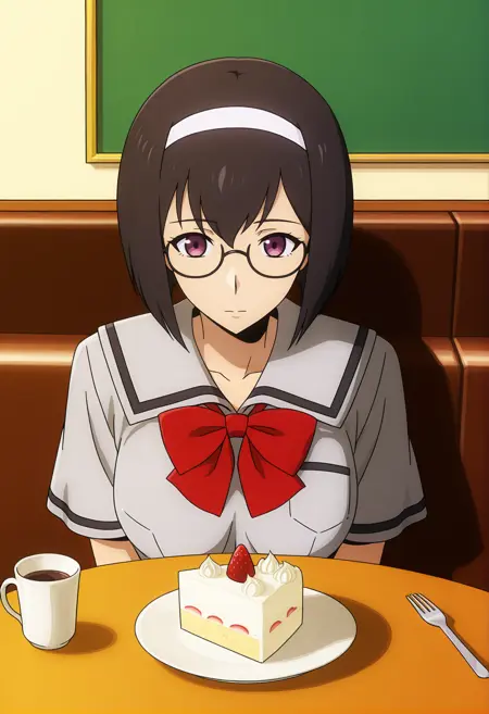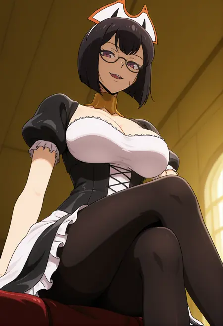 - Lee Bora,bob cut,black hair,purple eyes,glasses,