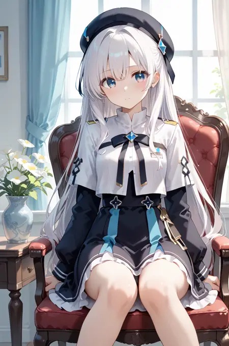 hikari_arcaea, 1girl, long hair, beret, white hair