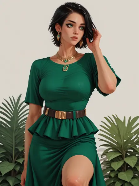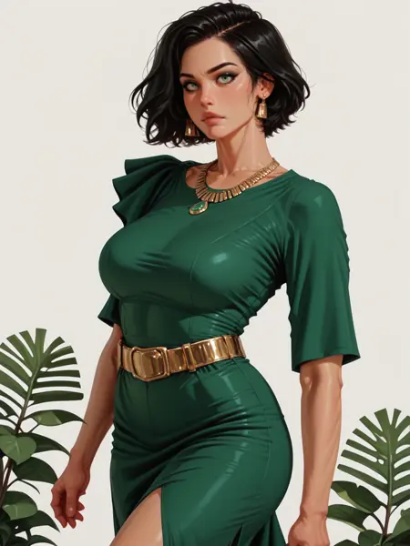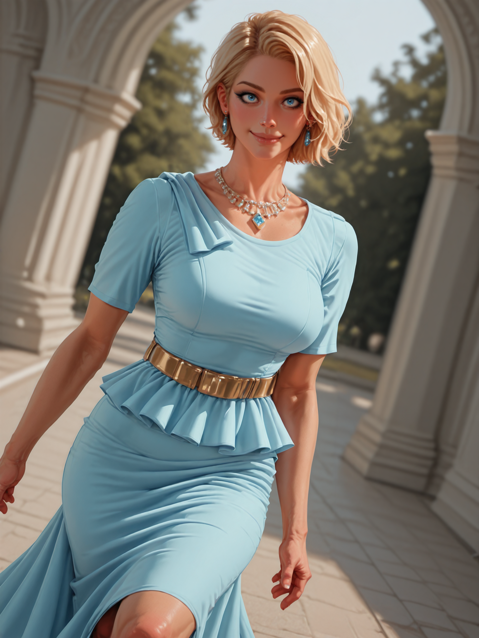 Laudin_dress_mb, large breasts, short sleeves, belt, skirt