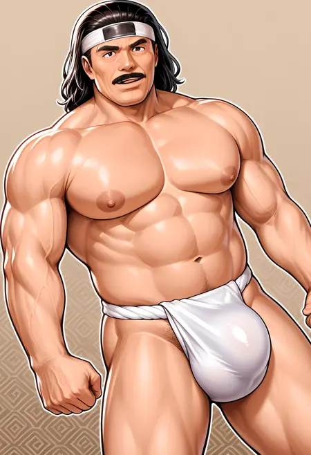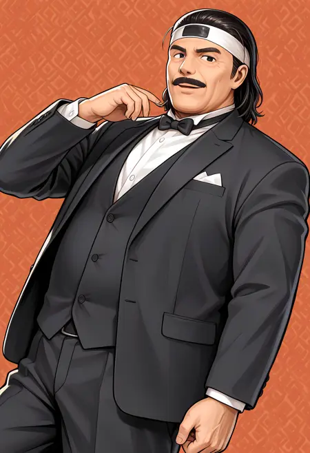 Ryuhaku Todoh from Art of Fighting, and later Capcom vs. SNK. Trigger is [aof_todoh]. By default he comes out a little chubby, probably because of the chestplate thingy he wears.