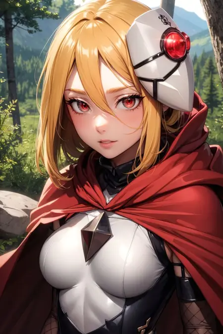 evileye_overlord、金色の髪、赤い目、マント、破れた服、クロック、フード付きマント、マスク