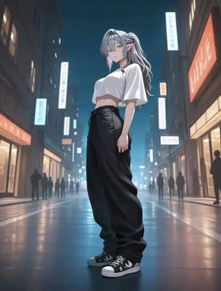 태그 및 원본: Tessia_Eralith_NYX, 녹색 눈, 회색 머리카락, 긴 머리카락, 땋은 머리, 눈 사이의 머리카락, 포니테일 엘프, 뾰족한 귀