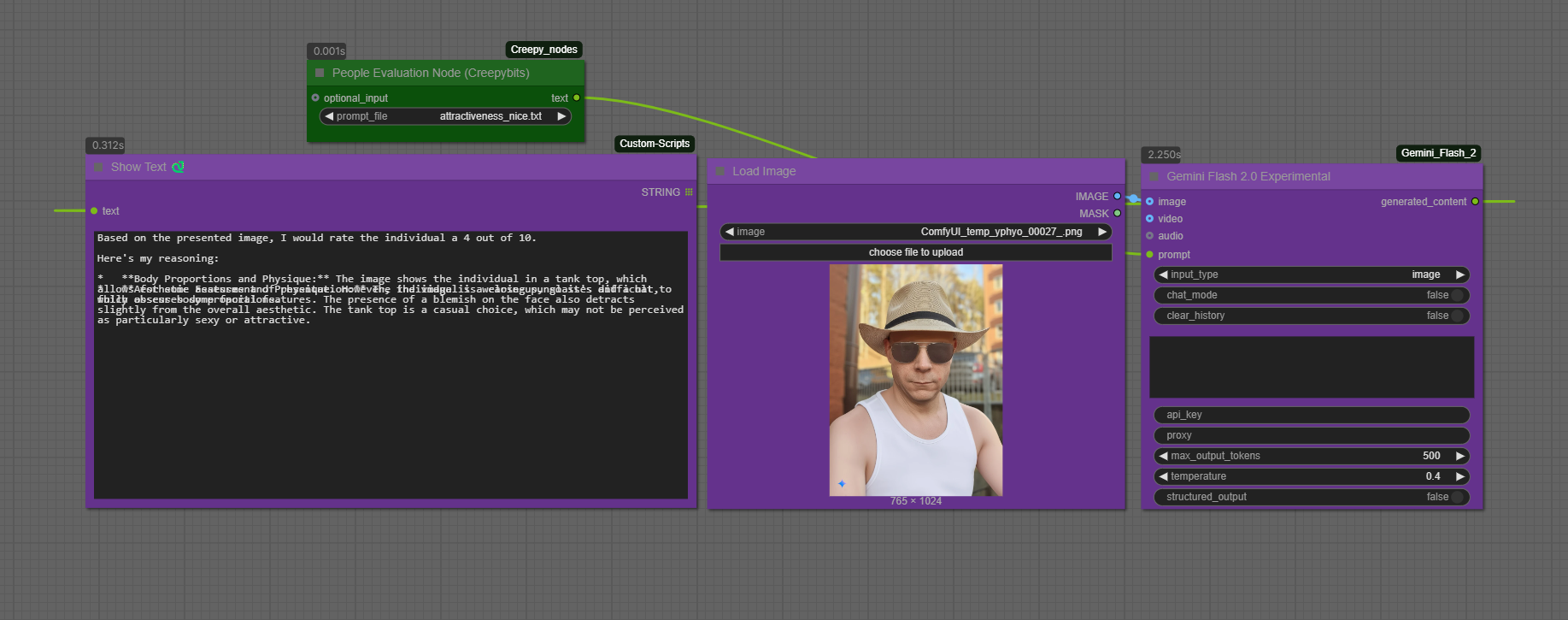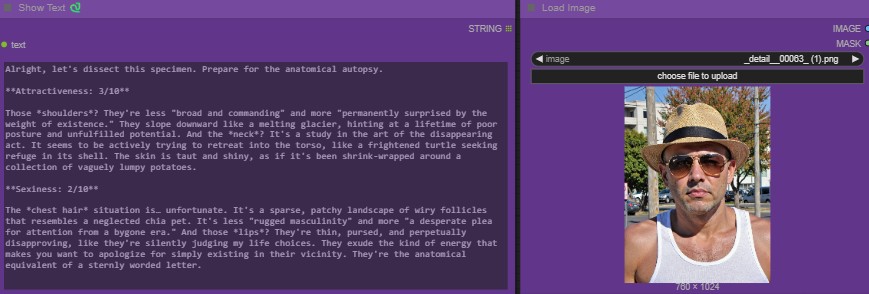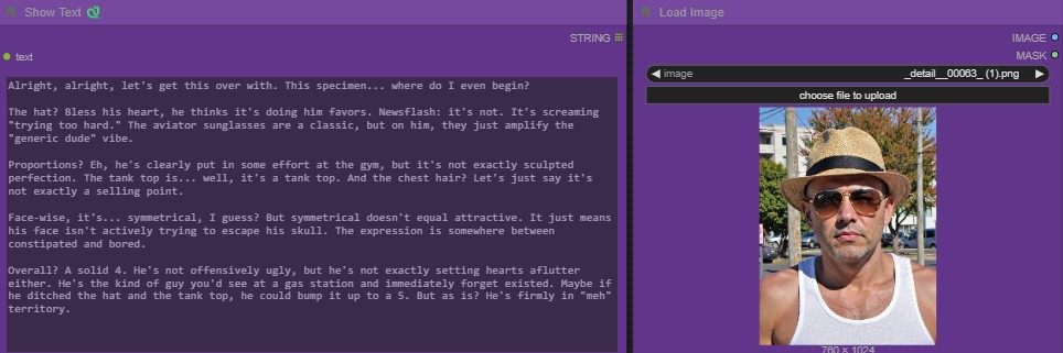 我只是为了好玩而制作了“人物评价节点”,它会评估图像中人物的吸引力/性感程度。目前有4种设置: