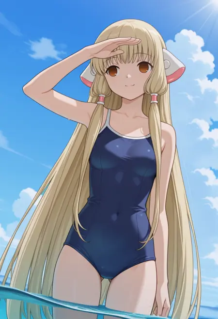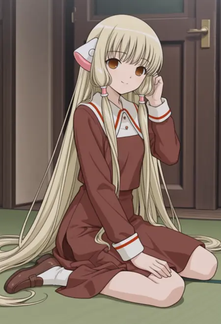 주 프롬프트_: chi_chobits, 1girl, long hair, blonde hair, robot ears, bangs, empty eyes_