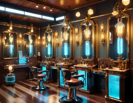 Edisonpunk: In contrast, Thomas Edison's practical ingenuity dominates. Cities glow under the warm light of incandescent bulbs. Machines are mechanical masterpieces of brass, wood, and glass. The exposed gears and filaments serve both form and function.