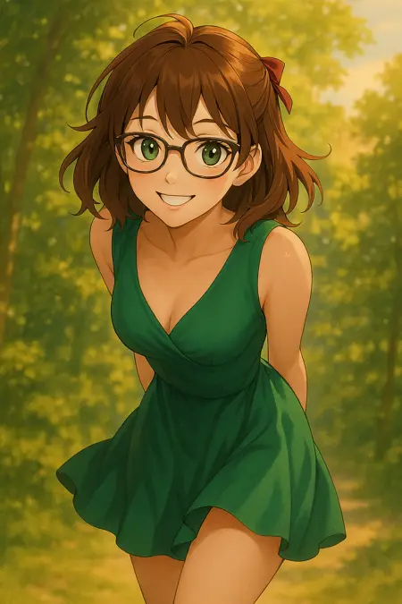 ethereal glasses short hair stunning young woman sensual intelligent sculpted magnetic soft lips captivating presence delicate face gentle smile filipa graceful movement slender body yet curvy well-defined features chestnut brown tousled