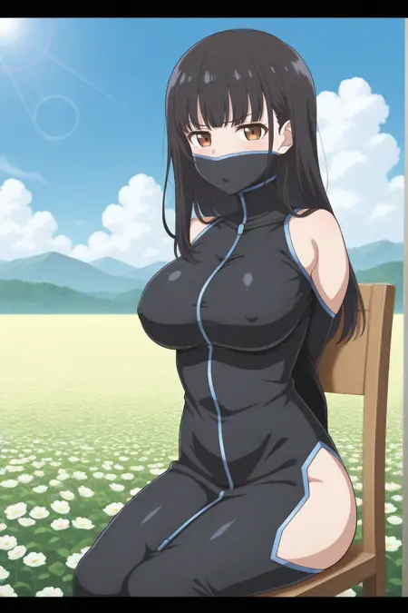 hobble dress, arms behind back, bound arms,