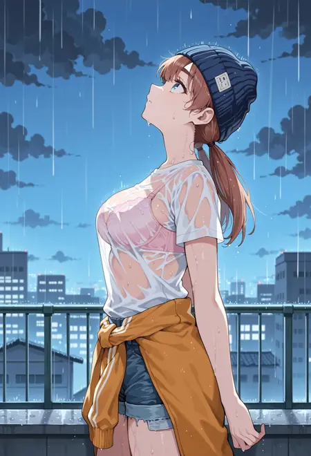 추가: 젖은 셔츠, 투명한 셔츠, 브라, 분홍색 브라,
