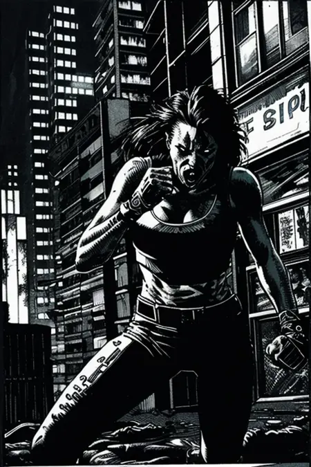 적절히 활용할 경우, 이 모델은 잉크와 연필로 그려진 듯한 설득력 있는 아날로그 스타일의 예술작품을 생성합니다. 이는 크로스하치팅과 복사기와 같은 다양한 명암 기법을 사용한 듯한 효과를 만들어냅니다. 이를 통해 연필로 만든 회색조 명암을 점묘 기법으로 전환할 수 있습니다.