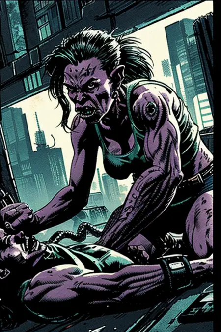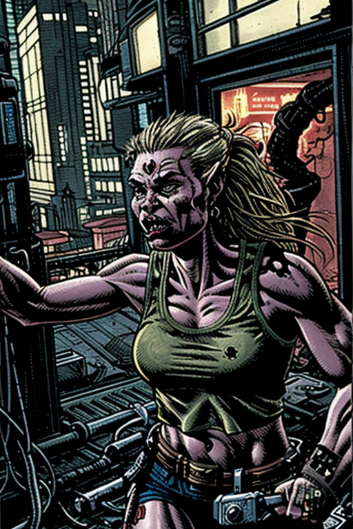 사람과 기계의 융합에 의해 지배되는 디스토피아적인 사이버펑크 미래를 상상하며, 그런 세계가 어떻게 보이고 느껴질지를 구상합니다. 1980년대 말에서 1990년대 초, 'Shadowrun'과 같은 RPG 책들이 새로운 세계를 열어주었습니다. 이러한 책들의 이미지는 고대비, 복잡하고 일부는 불안한 흑백 잉크 일러스트로 사이버펑크 세계를 묘사하며 독자를 디스토피아적 미래로 이끌었습니다. 이 독특한 스타일은 컴퓨터 지원 도구가 등장하기 직전의 시기에 여러 화가들이 사용했습니다. 이 모델은 당시에 사용된 이미지와 드로잉 기법으로 학습되었습니다.