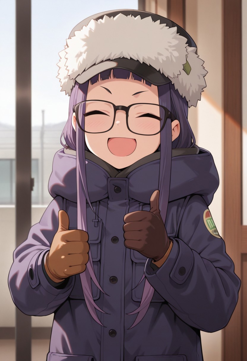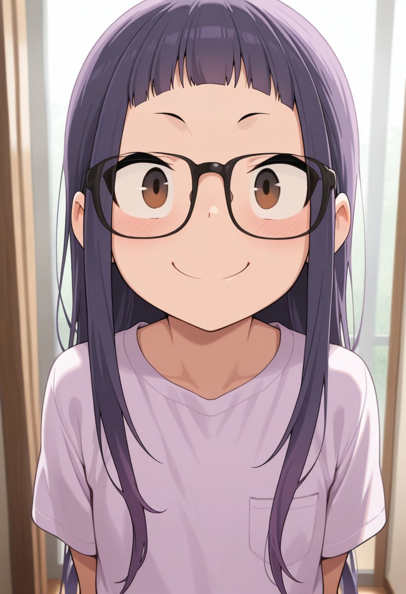トリガー単語: OGAKI CHIAKI、青紫色の髪、長い髪、眼鏡、茶色の目、黒枠の眼鏡