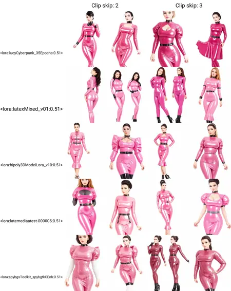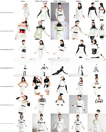 프롬프트 관련해서는 라텍스 패션과 여성 모델에 초점을 두고 훈련되었으므로, 라텍스와 여성에 관한 모든 것을 시도해보세요.