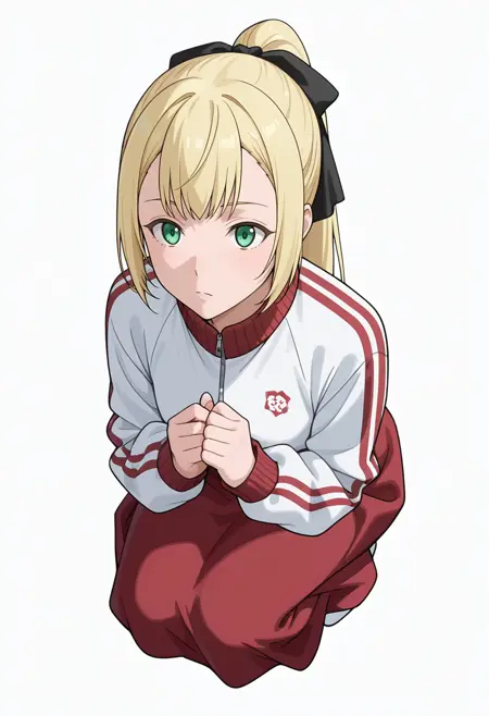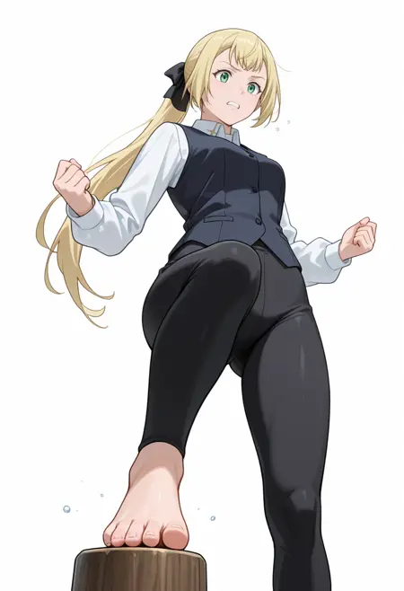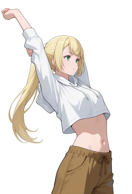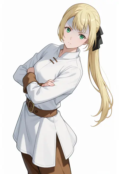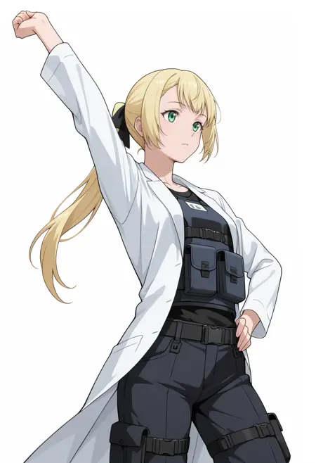rituscnn, 1girl, blonde hair, green eyes, long hair, ponytail,