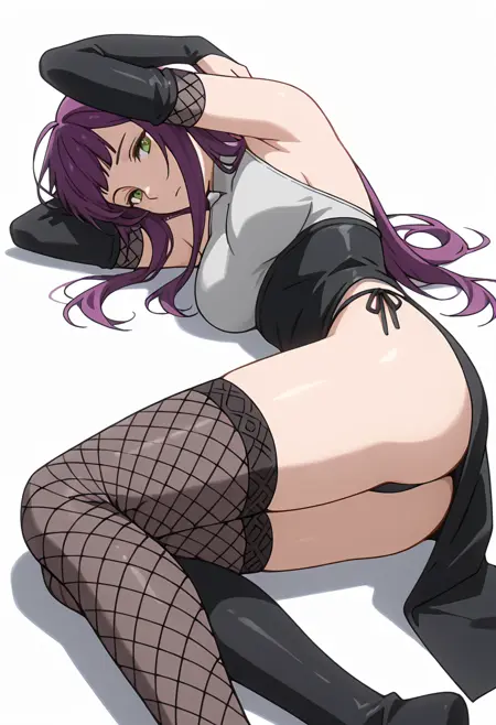 sleeveless, thighhighs, pelvic curtain, fingerless gloves, fishnets, detached sleeves, bridal gauntlets,
