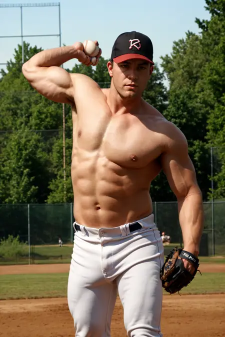 I've been wanting to do this for a while now since its part of the 'sexy sport uniform' series, though I wouldn't call it a series since I've only made two so far including this one, lol. And unlike American football, its actually a sport that I enjoy watching and kinda familiar with. Trained on realistic images of male models wearing baseball uniforms, some actual athletes and a few porn pics..