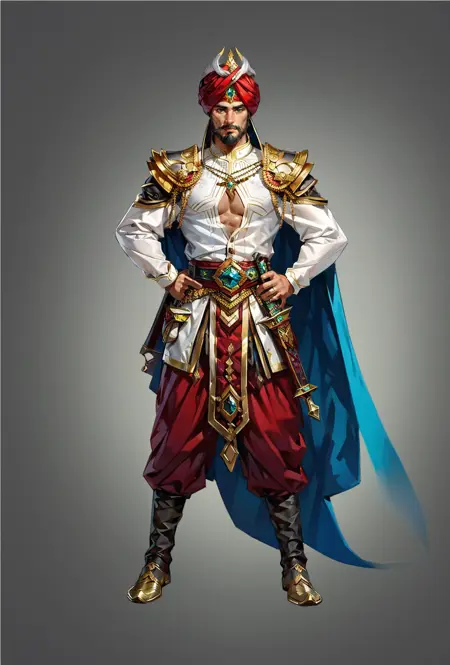 ペルシャ風が欲しい場合は(コンセプトアート、手描き作品、ペルシャ風衣装、オリジナルキャラクターデザイン)と記述してください。