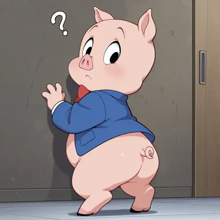 pig, animal ears, chubby cheeks, male, solo, anthro, black eyes, plump,