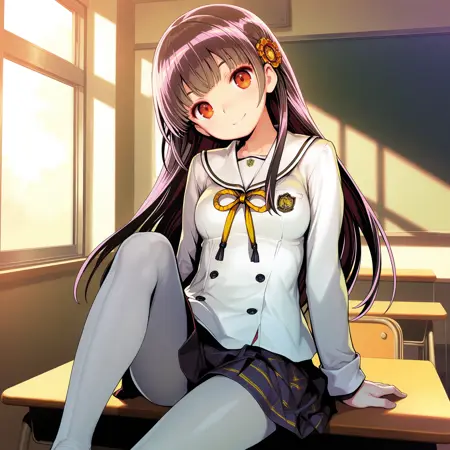 white pantyhose,hair ornament,long sleeves,skirt,school uniform,