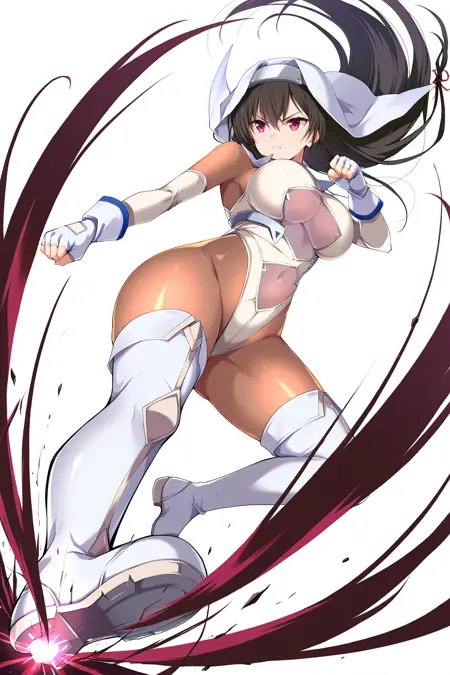 BattleDress, black_leotard, highleg_leotard, bodysuit, skin_tight, underboob_cutout, black_gloves, fingerles_gloves, thigh_boots