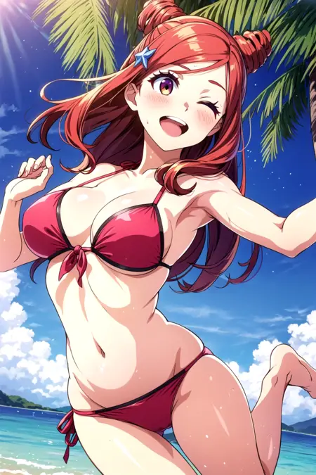 ・MGCM iko(긴 머리, 빨간 머리, 별 모양 머리 장식, 머리 땋기, 쓸어 올린 앞머리, )