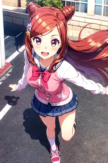 ・MGCM school uniform(粉色夹克,长袖,蝴蝶结,蓝色短裙,袜子,星星图案,运动鞋,)