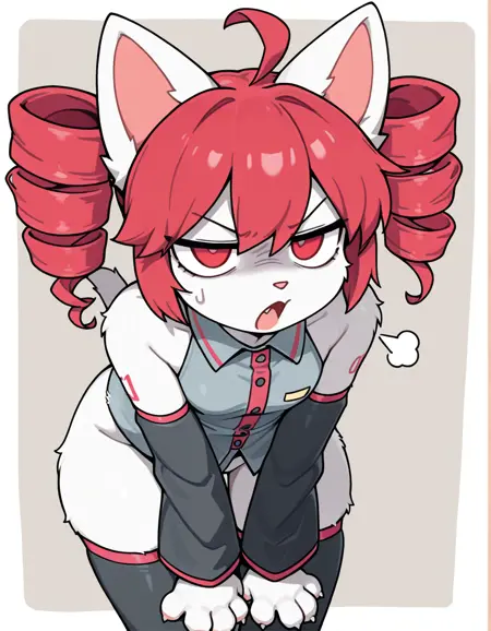 用于 Teto 时添加: "红眼睛,钻头卷发,钻头发,红发,双马尾"