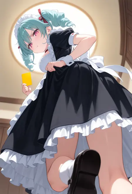 トリガーワードだけで機能しますが、サッカーの審判のように手を上げてカードを提示したい場合は、「arm up, holding card」を追加してください。