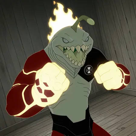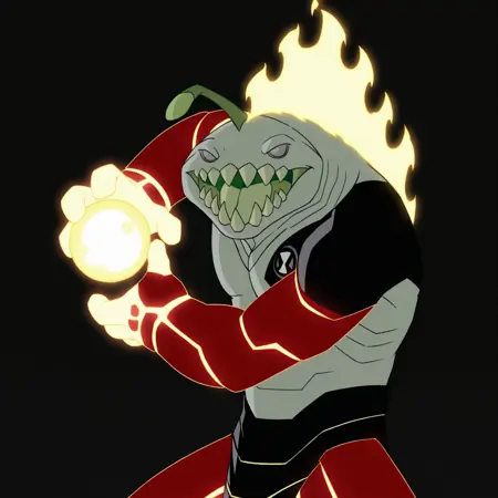 Heat Jaws 是《Ben 10》剧中 Heatblast 和 Ripjaws 的融合体,这一融合发生在剧集 Dr. Animo and the Mutant Ray 中。我使用了该集约 25 个 1080p 的屏幕截图进行训练,未包含任何粉丝艺术。需要注意的是,AI 常将红色的手臂和腿部误认为是盔甲;牙齿有时生成不佳,腿部/脚部也可能不够准确,但其他部分在我的测试中表现良好。
