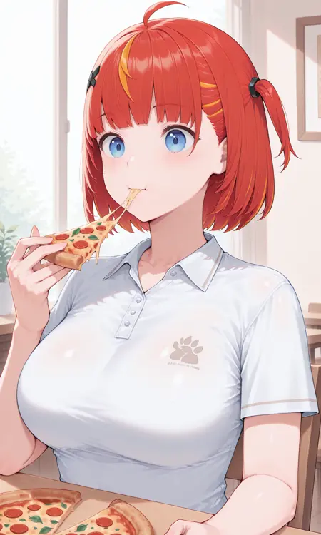 빨간 머리, 다채로운 머리, 아호게, 사이드 포니테일, 머리 장식