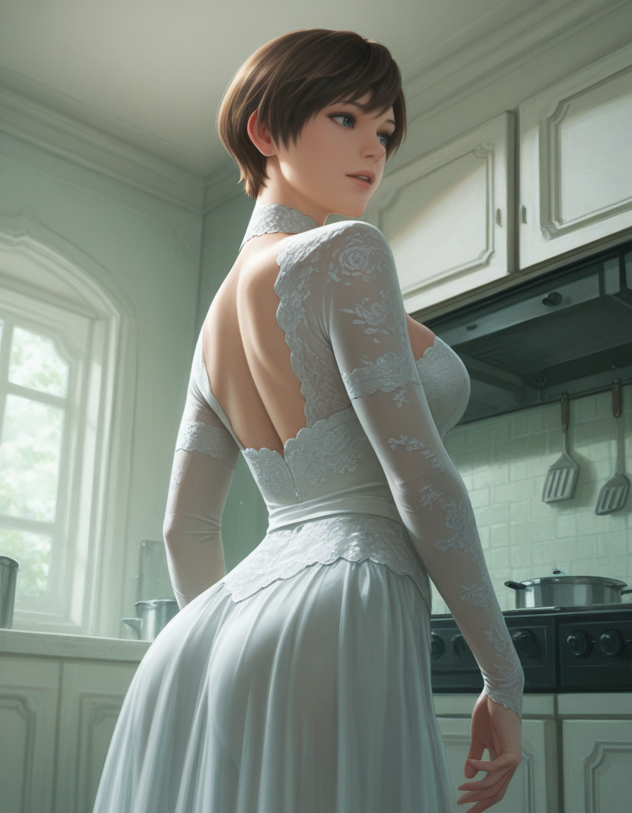 彼女の衣装の下部のショットを取得するのが難しかったため、結婚式用のドレスや他の衣装の下部については、AIが推測して生成することになります。