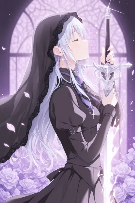 天使:1girl,阿莉安娜,天使阿莉安娜,超长发,浅蓝色头发,刘海,头发遮住眼睛,