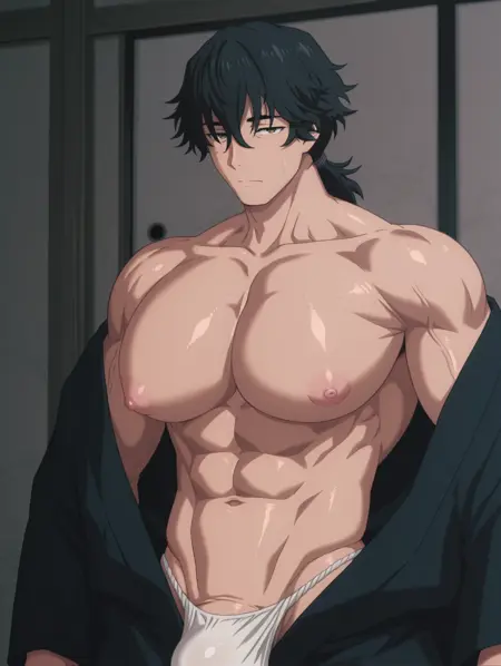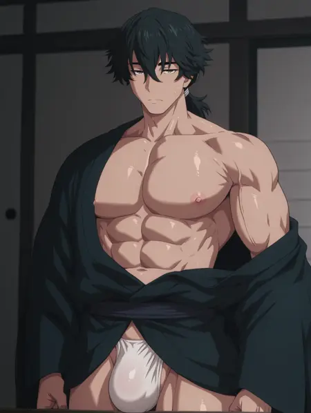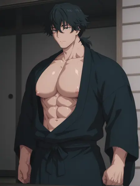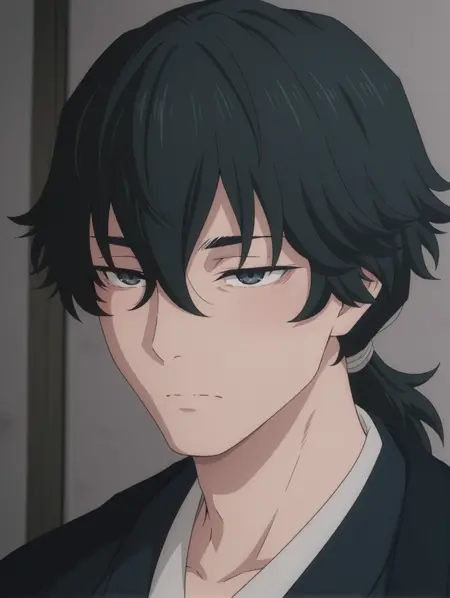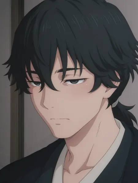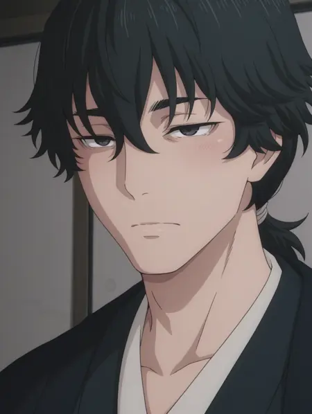 Jinta, black hair, japanese clothes, jinta, ponytail, hair between eyes