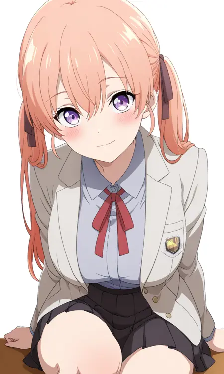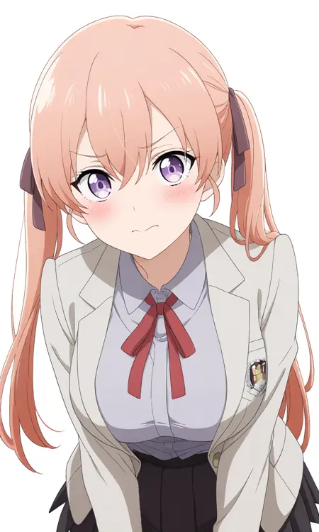 amano erika,ツインテール,髪リボン,眉間の髪,赤いネックリボン,シャツ,ブレザー,長袖,学校制服,スカート,プリーツスカート,黒いスカート,ジャケット