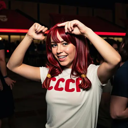 LoRA는 418에서 2160까지 다양한 해상도의 297장의 이미지로 학습되었습니다. 이는 특별히 "ulyana" 트리거에 대해 학습되었지만, 생성이 실패할 경우 빨간 머리, "CCCP" 티셔츠 또는 흰 셔츠를 추가해 보세요. 울리아나는 중편 소설 『끝없는 여름』의 주요 인물 중 하나입니다. 울리아나는 키가 작은(143cm) 빨간 머리의 소녀로, 두꺼운 두 개의 꼬리에 머리를 묶고 있습니다. 활기차고 움직임이 많으며, 아이 같은 천진난만함 때문에 자신의 행동의 결과를 항상 인식하지는 못합니다.