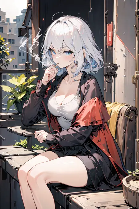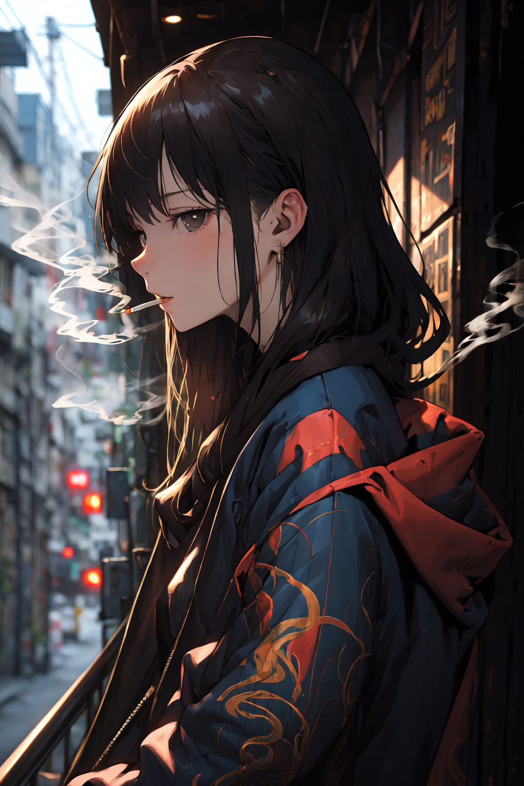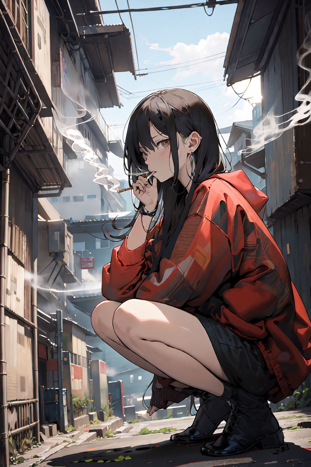 (masterpiece:1.2), best quality,PIXIV, smoking girl,