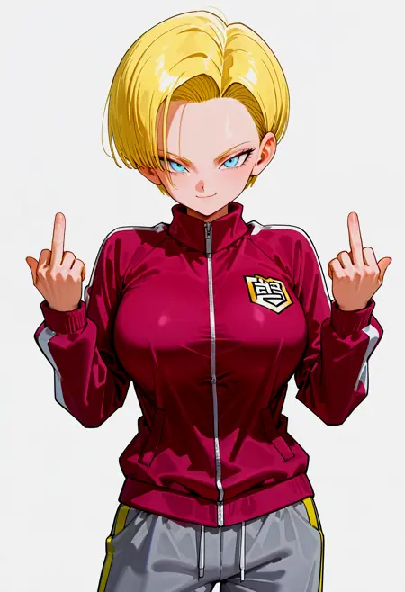 안드로이드 18, 드래곤볼, 1소녀, 하늘색 눈, 금발, 이마, 단발, 큰 가슴,