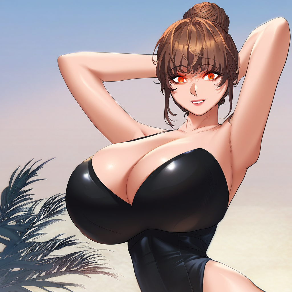 은화: eun-hwa, 아름다운 노란 눈, 아름다운 백금색 머리카락, 아름다운 짧은 머리, 앞머리, 크고 헝클어진 가슴, 비키니 탄 선, 아름다운 황금빛 피부, 입 아래 왼쪽 뺨에 한 개의 점,