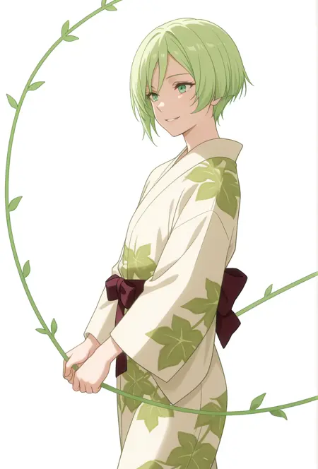 japanese clothes, kimono, yukata, white kimono, sash,vines,