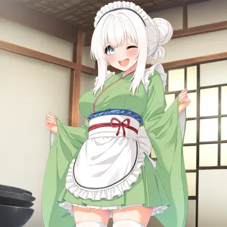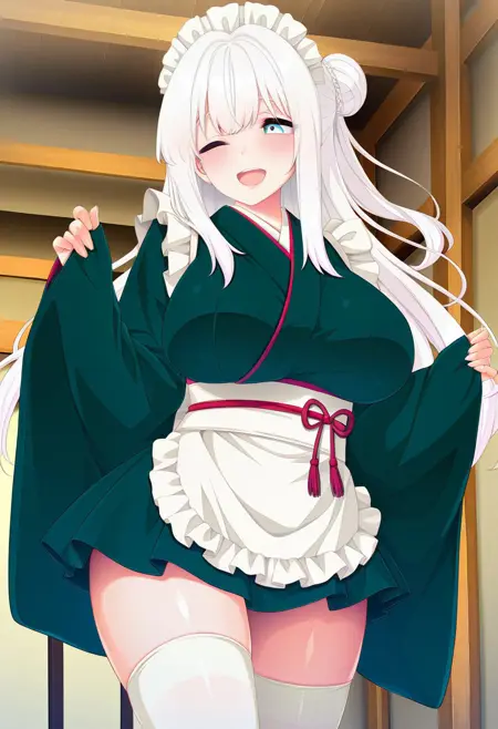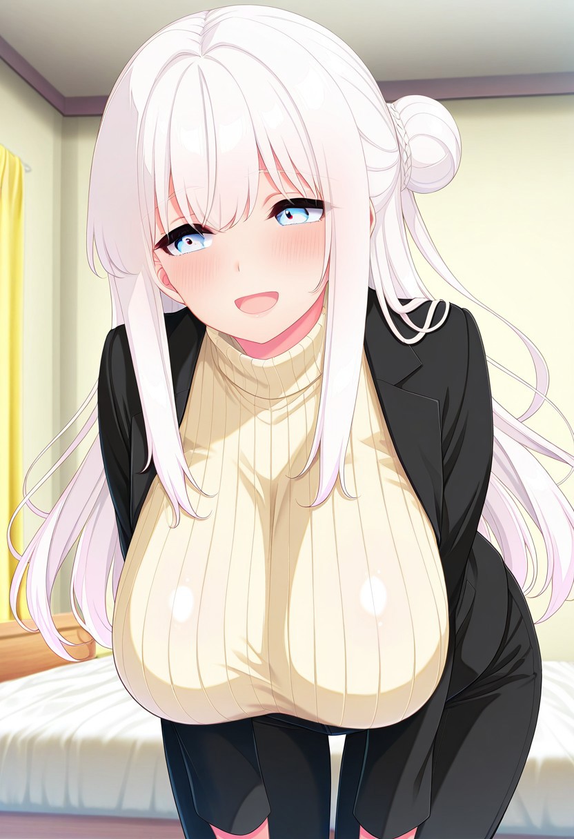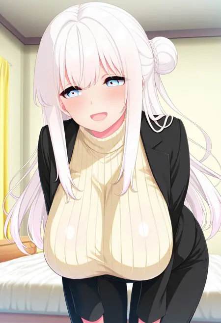 추천 프롬프트: Michiru Aijou, large breasts, beautiful woman, blue eyes, white hair, long hair,