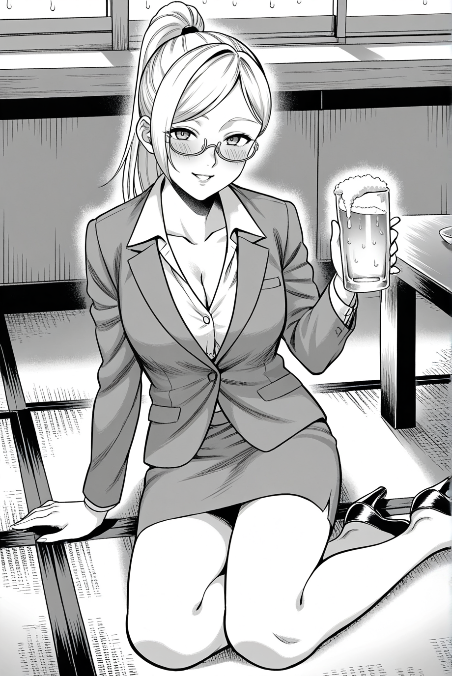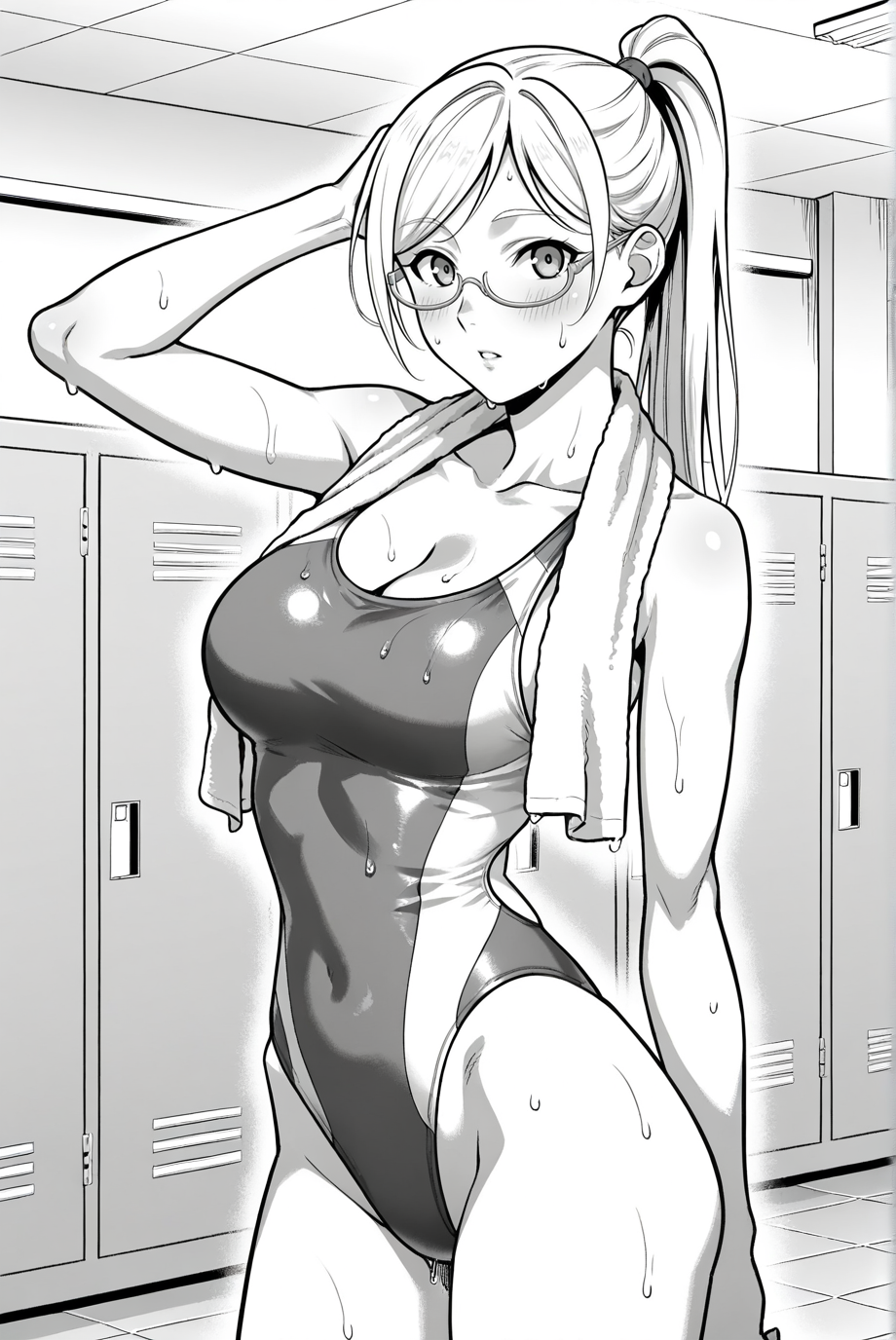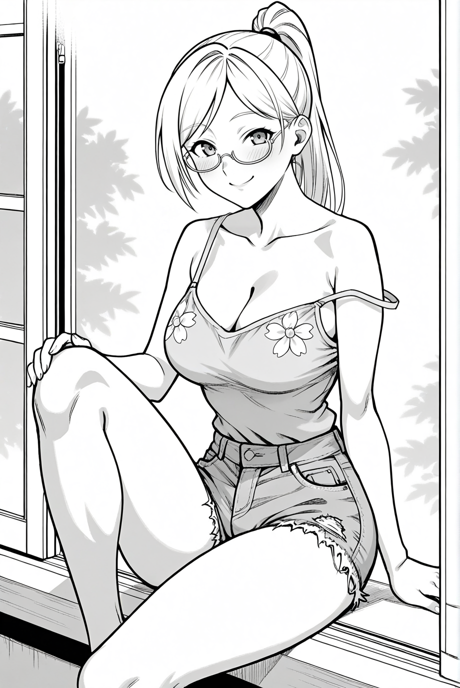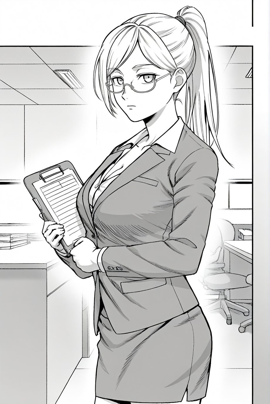 <lora:AkiyamaKaede-IL-v1-08:0.9>, ChopioAk1yama, long hair, blonde hair, high ponytail, semi-rimless glasses, under-rim eyewear, blue eyes, looking at viewer,