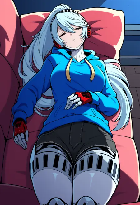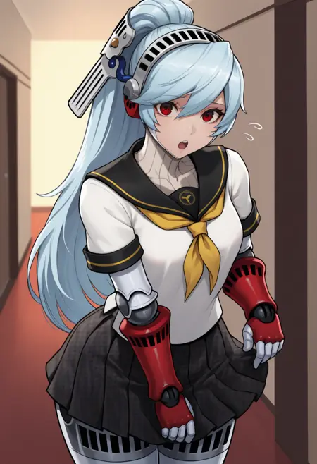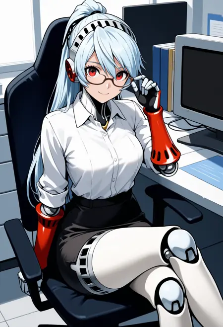 触发词 + 外观: l4brys, 机器人, 机器人关节, 长发, 蓝发, 马尾辫, 耳机, 红眼