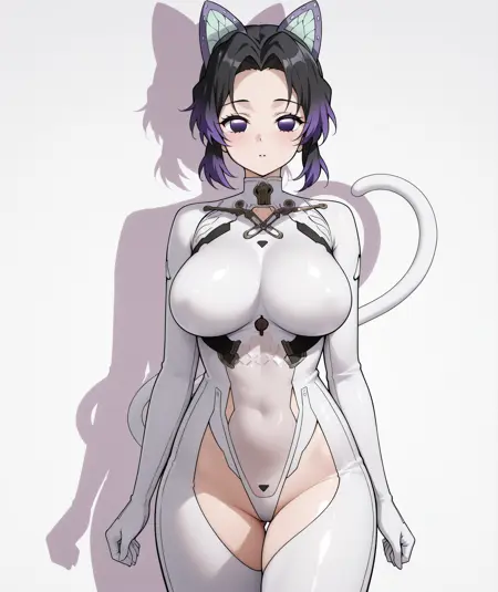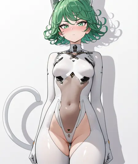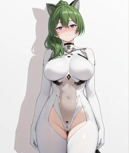 手袋、太もも、白い手袋、ボディスーツ、頭部装備、白いボディスーツ、動物の耳、尾、猫耳、猫の尾、偽の尾、ケーブル、機械的尾