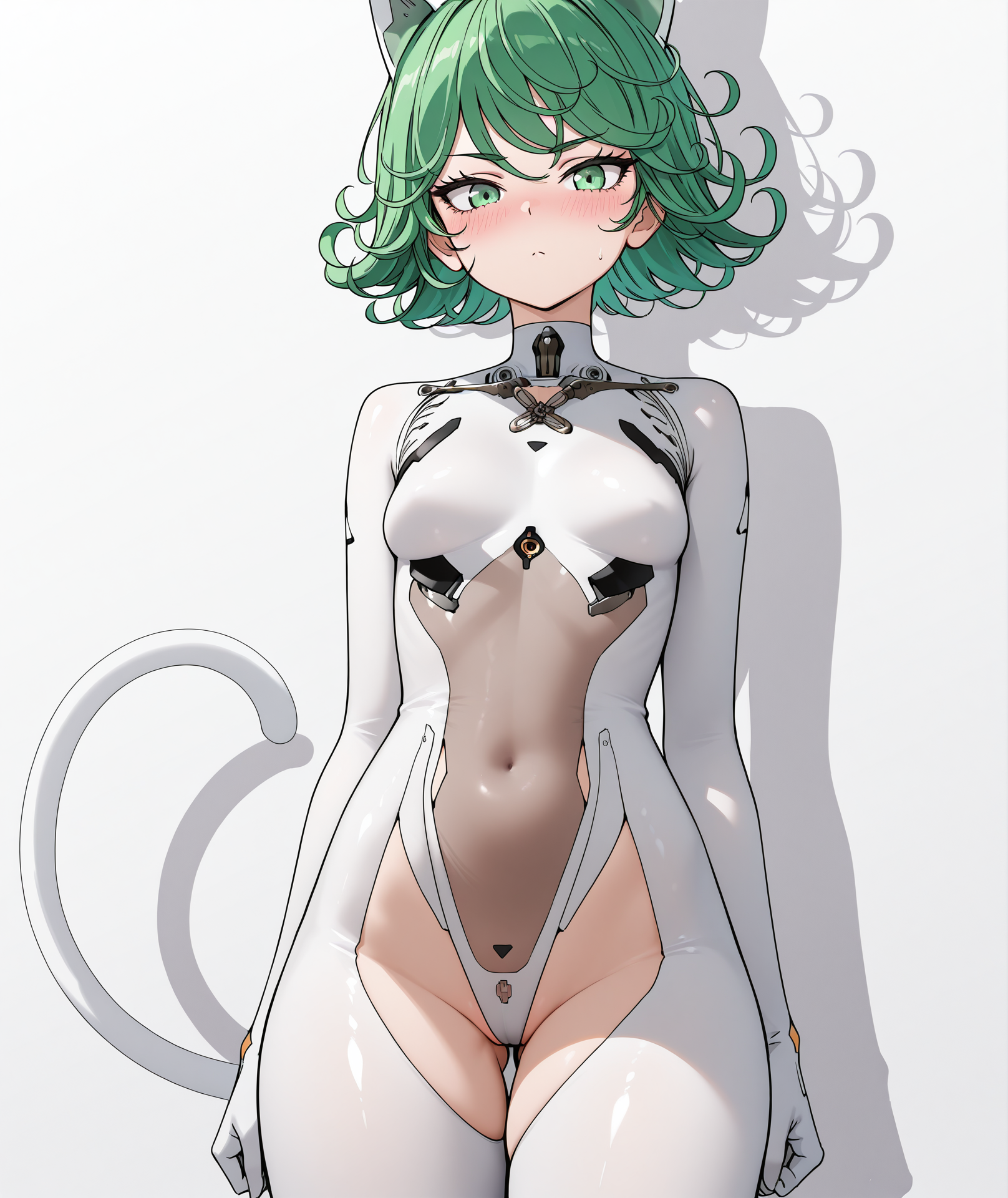 手套,大腿,白色手套,连体衣,头饰,白色连体衣,动物耳朵,尾巴,猫耳,猫尾,假尾巴,电缆,机械尾巴,