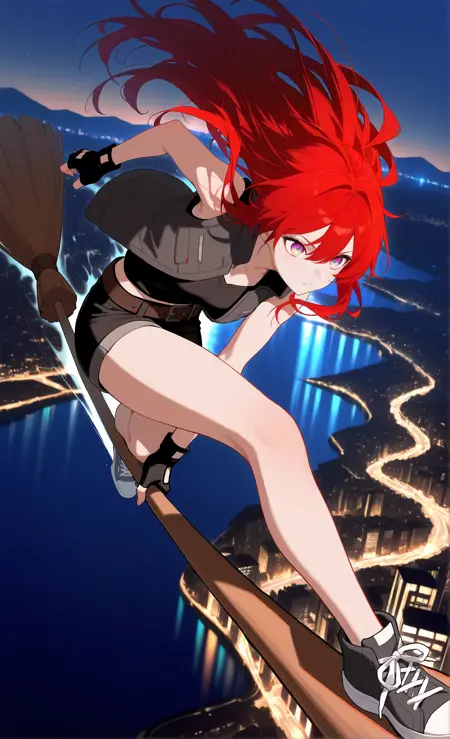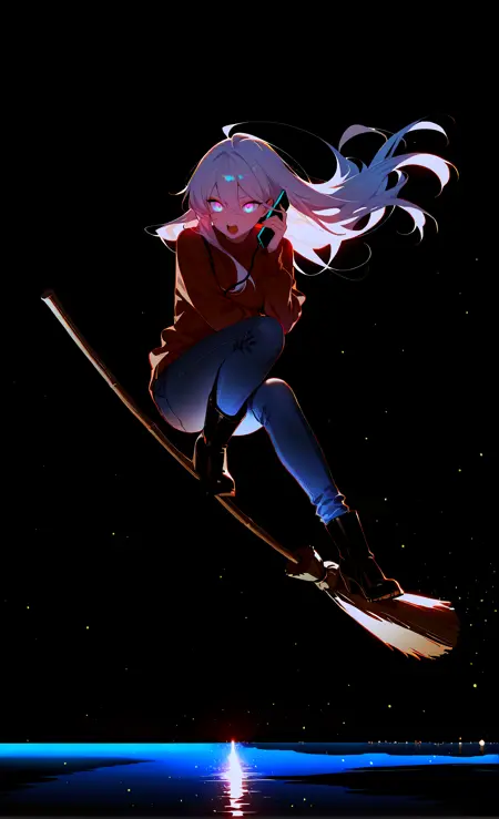 LoRA 将两个独立的数据集(broom_surfing 和 broom_riding)合并为一个。关键区别在于:在 'broom_surfing' 中,角色站在扫帚上;而在 'broom_riding' 中,角色坐在扫帚上。请分别使用这两个触发标签以获得不同效果。推荐权重:0.8
