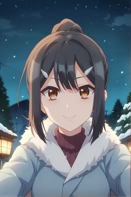 기본: miyu-ede, 1girl, 갈색 눈, 검은 머리, 헤어 클립,