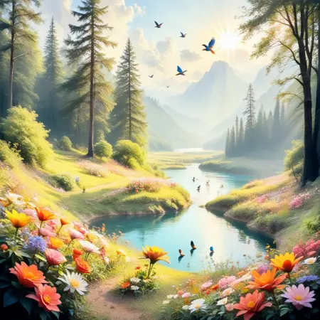 对第29个以诺灵界RII的描绘,展现了一片郁郁葱葱的天堂景象。