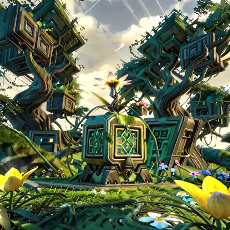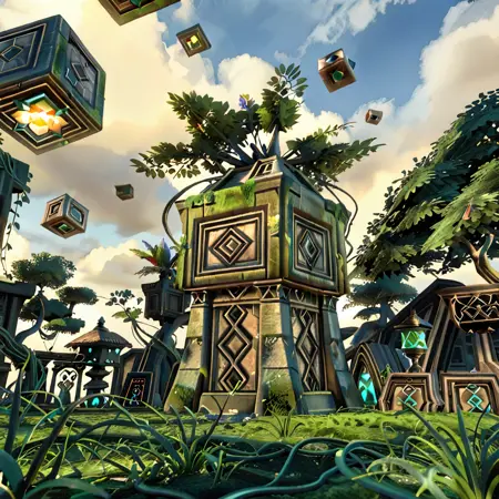 训练中使用的独特标签:asuran_architecture(阿苏拉建筑)、asuran_tech(阿苏拉科技)、asuran_console(阿苏拉控制台)、floating cubes(漂浮立方体)、floating planter(漂浮花盆)。全息图常呈现为圆形——我主要聚焦于蓝色和紫色的全息图,因为它们在Rata_Sum中最常见。如需户外场景,建议使用“sky”(天空)和“grass”(草地)。“trees”(树木)、“flowers”(花朵)和“vines”(藤蔓)为可选元素。