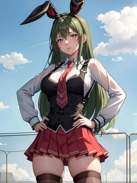 绿色头发,长发,蓝色眼睛,兔耳发带