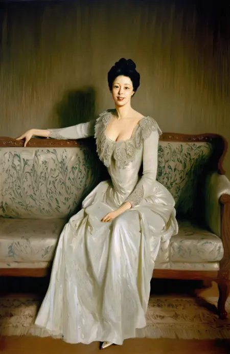 约翰·辛格·萨金特的风格。全能型大师。细致的干笔触和画布纹理。