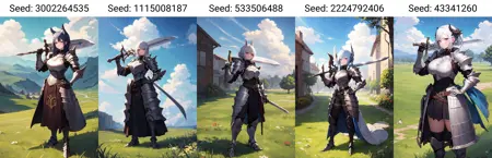 다른 무기는 데이터세트에 포함되지 않았습니다. 칼과 잘 어울리지 않기 때문입니다. 도끼, 창, 곤봉 등을 프롬프트로 시도할 수 있지만, 대부분 좋은 결과를 얻지 못할 겁니다.
